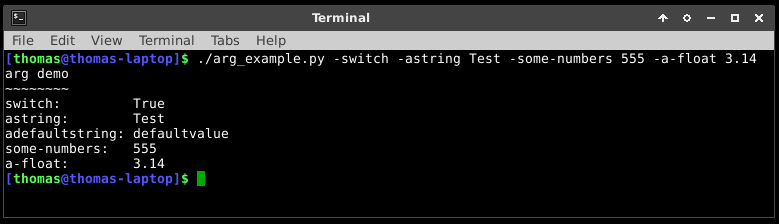 This project was mainly intended for me to get started with object-oriented programming with python. It is a very simple command line argument parser which uses two classes. One to store the arguments and another class for the parser itself. The package also contains a test snippet which should demonstrate the usage.